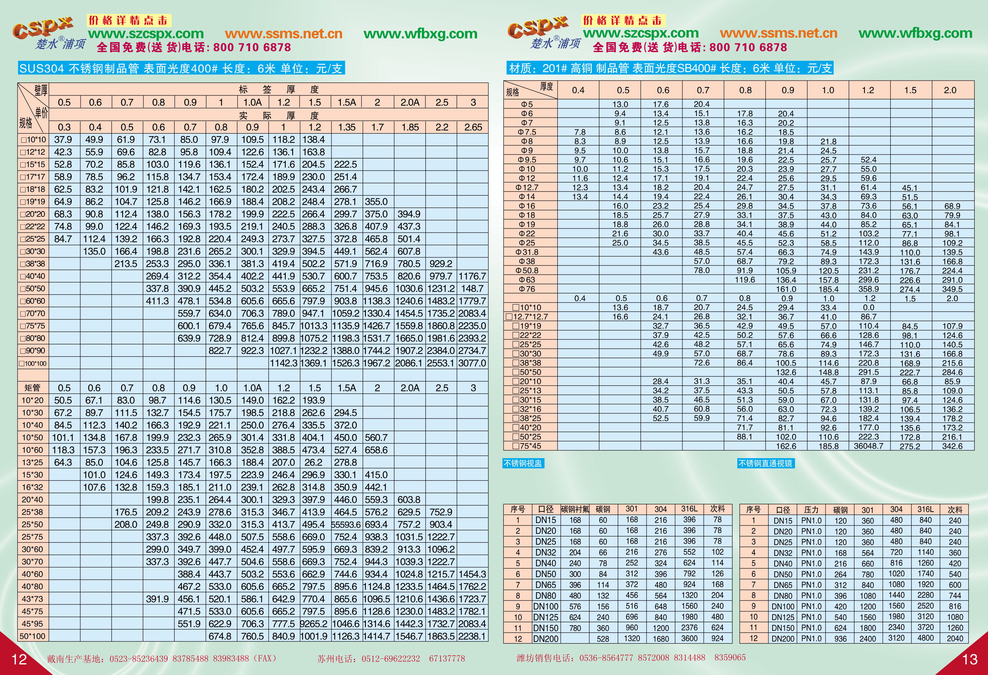 不锈钢钢管价格表